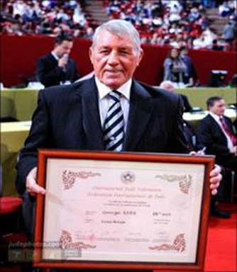 O Britânico George Kerr, de 72 anos, presidente da Associação Britânica de Judô, foi promovido a 10º Dan em Paris durante a realização do Grand slam.